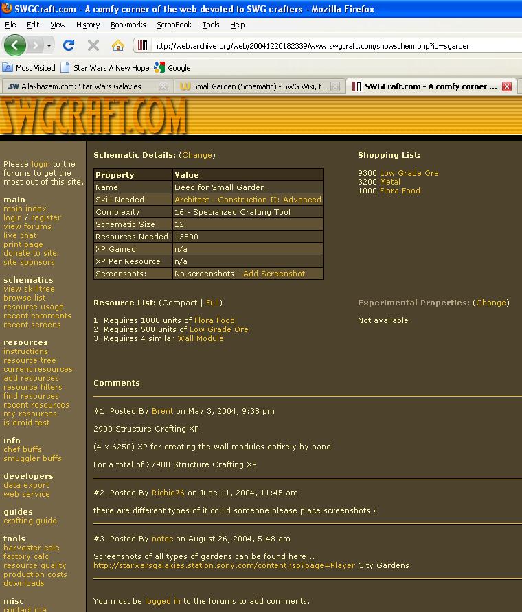 | 14:58, 17 January 2010 | SmallGardenSWGC.jpg (file) | 123 KB | {{PageHeader|Image|Deed for: Small Garden}} == description == Deed for: Small Garden == source == www.swgcraft.com via wayback.org == author == Unknown == permission == {{Non-free game screenshot}} Category:Architect | 1 | |