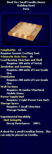 | 14:33, 17 January 2010 | SmallCorelliaHouseSWGC.jpg (file) | 122 KB | {{PageHeader|Image|Deed for: Small Corellia House}} == description == Deed for: Small Corellia House == source == www.swgcraft.com via wayback.org == author == Unknown == permission == {{Non-free game screenshot}} Category:Architect | 1 | |