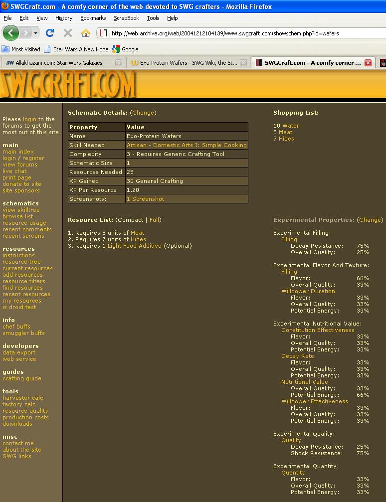 | 15:37, 18 January 2010 | ExoProteinWafersSWGC.jpg (file) | 124 KB | {{PageHeader|Image|Exo-Protein Wafers}} == description == Exo-Protein Wafers == source == www.swgcraft.com via wayback.org == author == Unknown == permission == {{Non-free game screenshot}} Category:Artisan | 1 | |