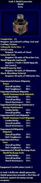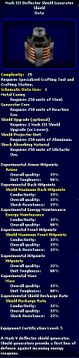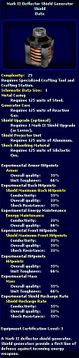 | 05:05, 2 June 2008 | Mark IV Deflector Shield Generator - Schematic.jpg (file) | 56 KB | {{PageHeader|Image|ImageName}} == description == Image Description == source == http://swg.allakhazam.com == author == == permission == {{Non-free game screenshot}} Category:Shipwright | 1 | |