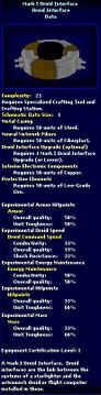| 05:04, 2 June 2008 | Mark III Droid Interface - Schematic.jpg (file) | 48 KB | {{PageHeader|Image|ImageName}} == description == Image Description == source == http://swg.allakhazam.com == author == == permission == {{Non-free game screenshot}} Category:Shipwright | 1 | |